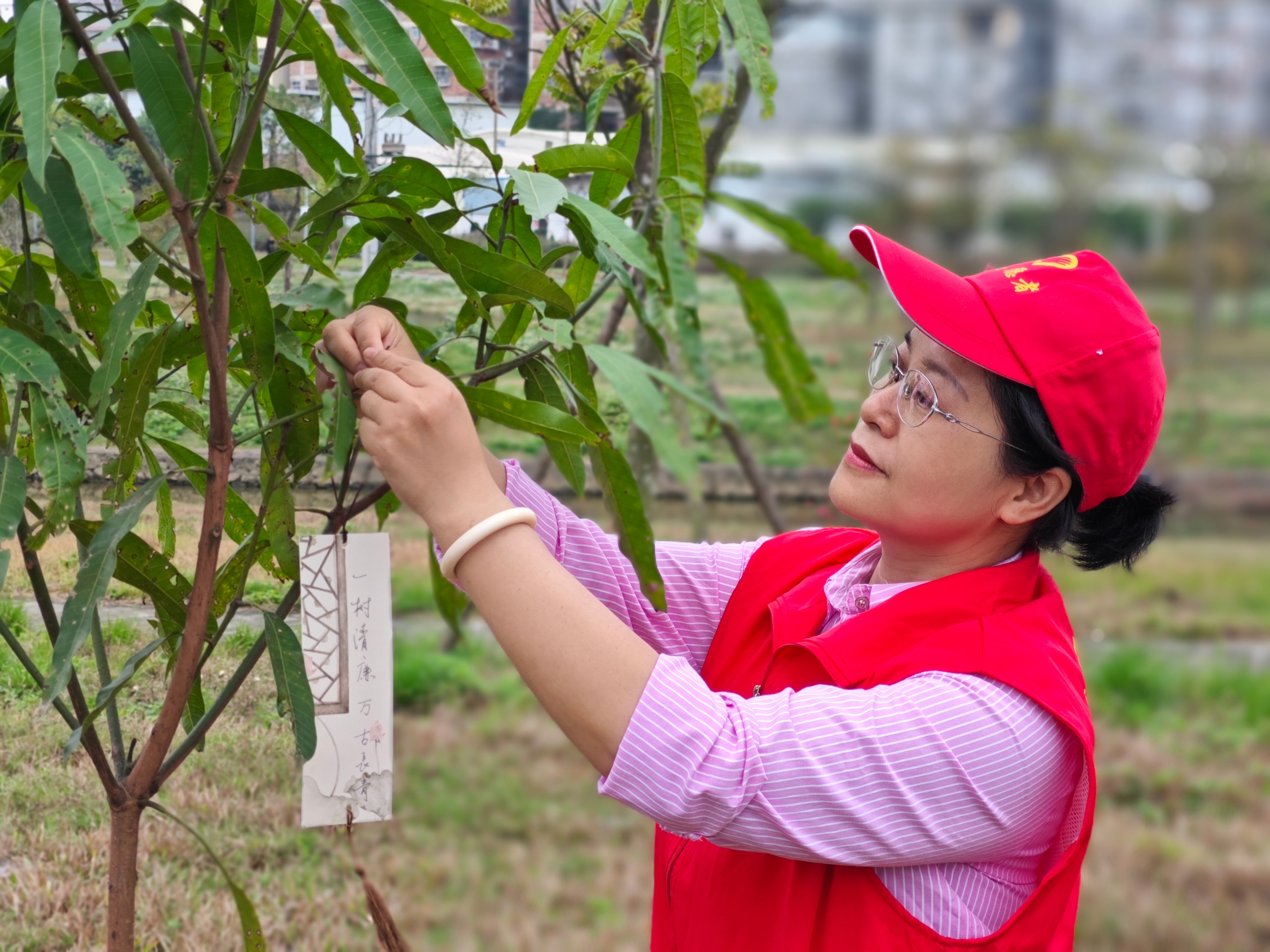 栽種好樹苗后,干部職工們將自行書寫的“植樹播綠,倡廉樹風(fēng)”“種廉潔樹,筑防腐堤”“廉潔恰是春江水,潤澤人生長安寧”等廉潔寄語卡片懸掛到樹苗上??ㄆS著春風(fēng)搖曳,形成了一道獨具特色的“清風(fēng)林”風(fēng)景線。