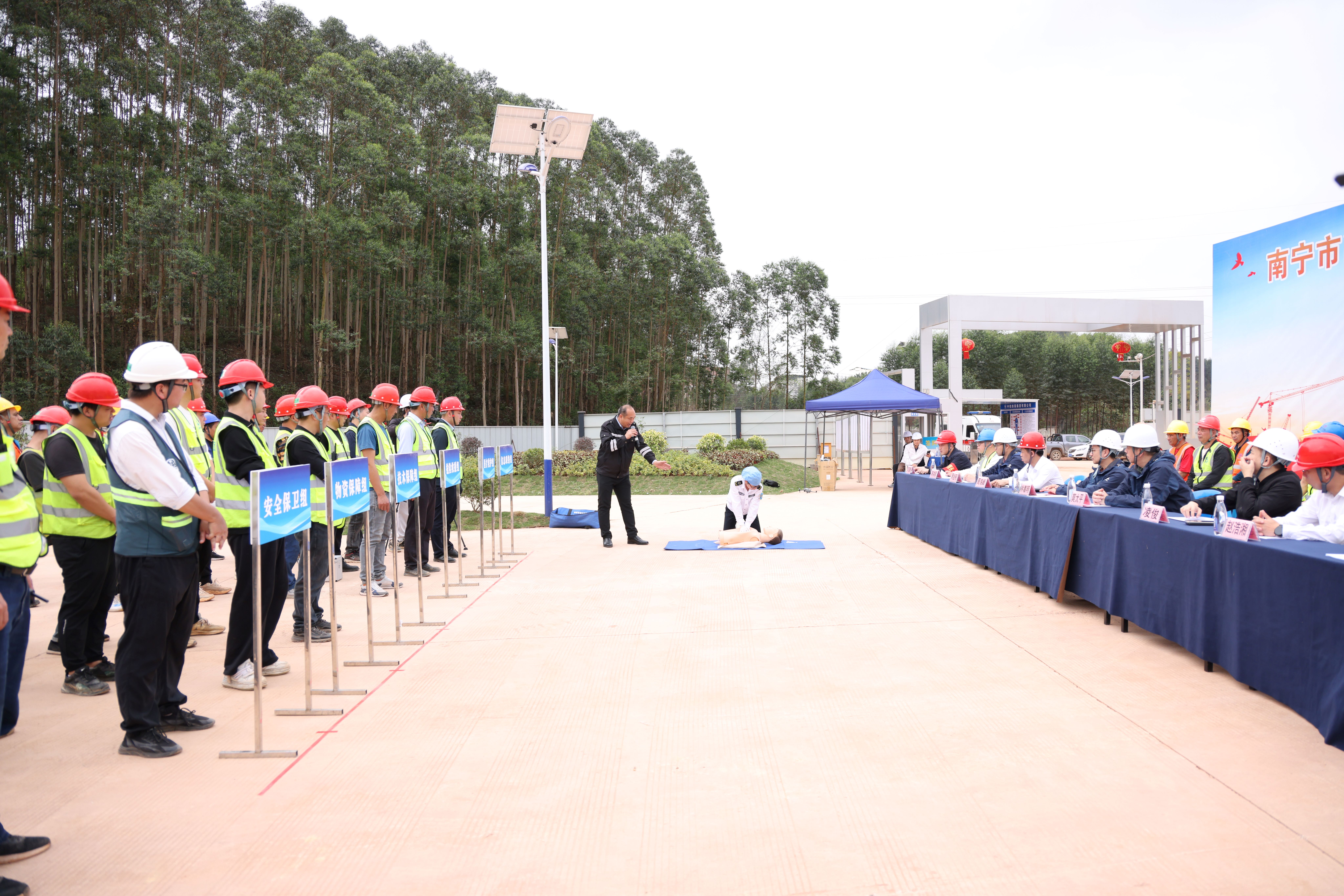 演練過程中,各救援小組按照應急預案的責任分工密切配合,整個過程組織有序、銜接緊密,最終順利完成了突發(fā)事故的緊急救援任務,達到了預期的演練效果。演練結(jié)束后,南寧市玉洞醫(yī)院的醫(yī)生為大家講解了心肺復蘇的基本知識和技巧,并現(xiàn)場演示了單人徒手心肺復蘇及人工呼吸法,指導參演人員進行實際操作演練。