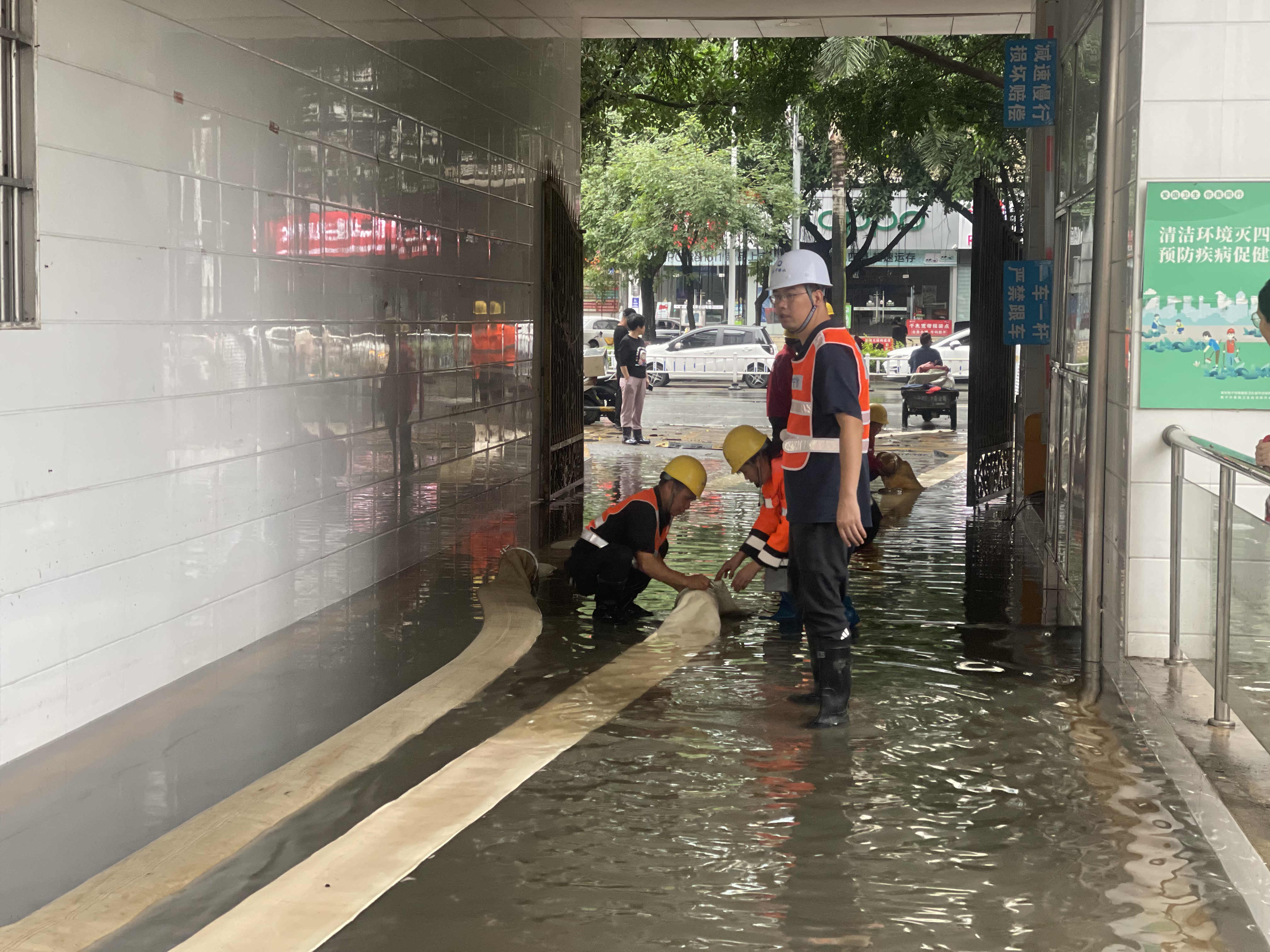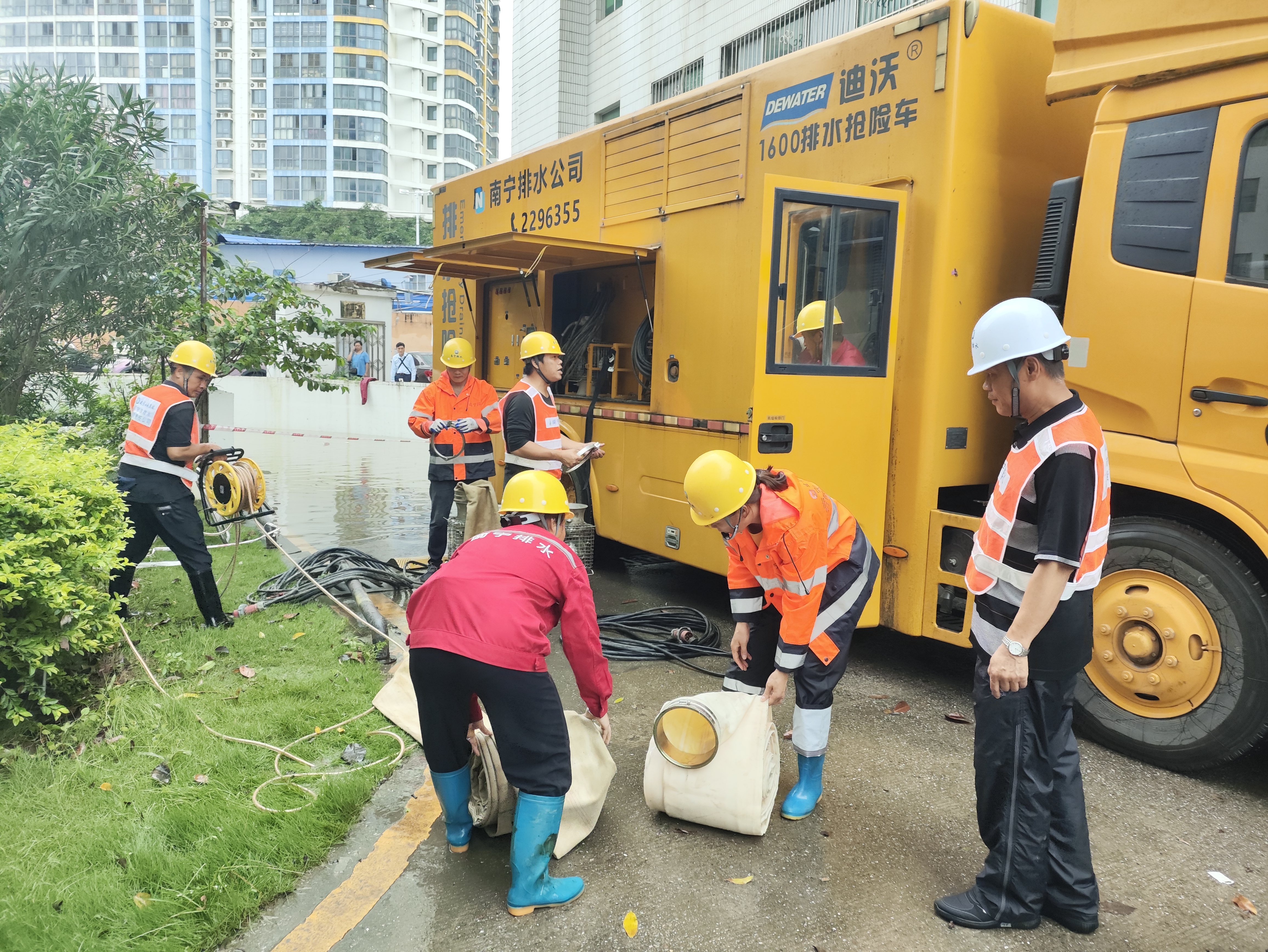 市排水公司搶險隊伍前往東葛路廣西中醫(yī)藥研究院開展排澇搶險。(李正超/攝)