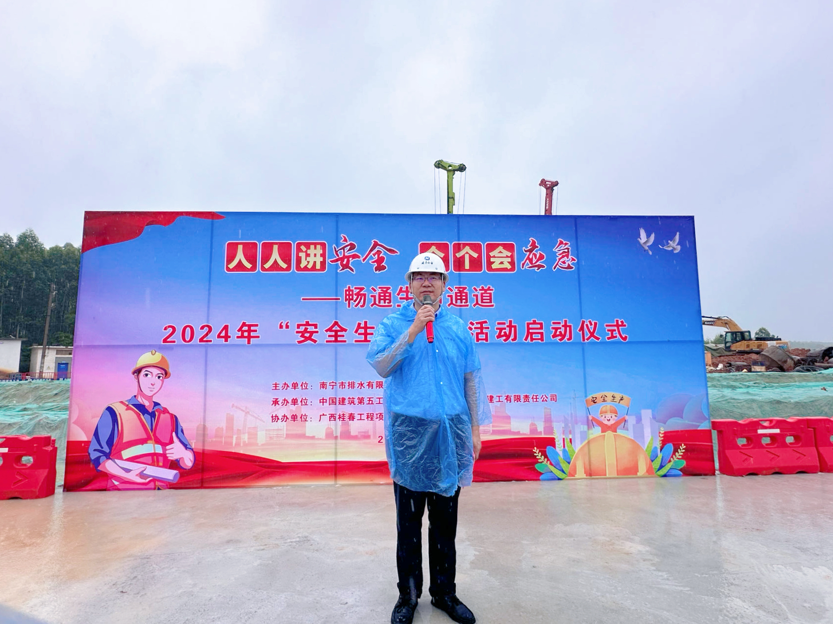 近日,市排水公司在南寧市邕江上游二期引水和應(yīng)急引水工程右江泵站項目現(xiàn)場舉行2024年“安全生產(chǎn)月”活動啟動儀式。市排水公司總經(jīng)理何振、副總經(jīng)理何本賢,市排水公司各部門員工代表,邕江上游二期引水工程右江泵站標段施工單位中建五局廣西分公司副總經(jīng)理宋利華、其他各參建單位代表及項目一線工人參加。