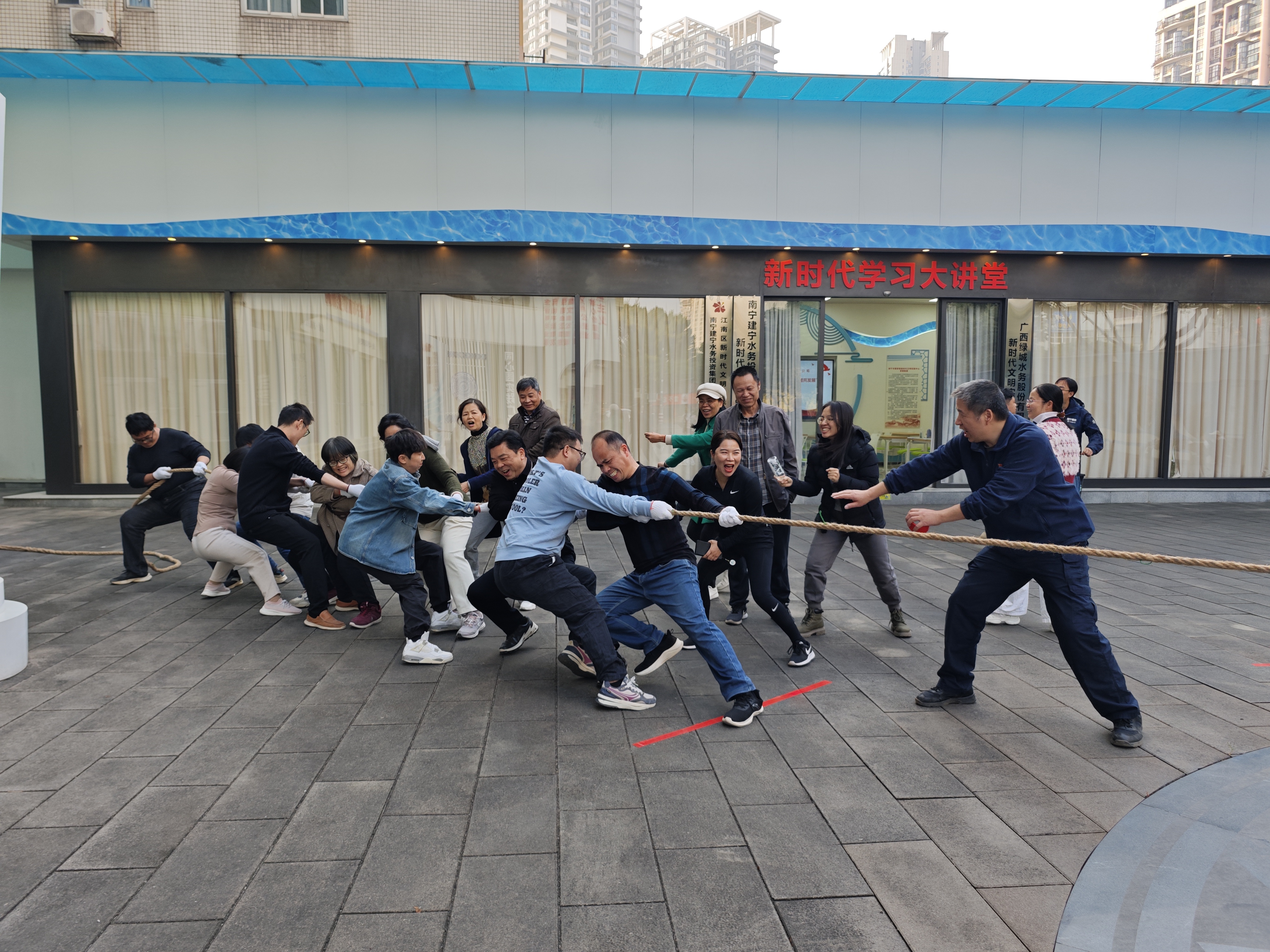 在民族體育趣味運動會環(huán)節(jié),兩個參賽隊伍展現出了高昂的斗志和團隊協(xié)作精神?!肮曹S奮進”跳大繩項目中,參賽隊員們默契配合,靈活敏捷,身姿矯健,每一次跳躍都凝聚著力量與美感。而在“聚力同心”拔河賽中,雙方隊伍更是全力以赴,選手們鉚足了勁,漲紅了臉,咬緊牙關,拼盡全力。觀眾們也熱情高漲,自發(fā)組成拉拉隊,為選手們吶喊助威。整個賽場活力滿滿,沉浸在一片歡聲笑語之中,充分展現了市排水公司干部職工頑強拼搏、奮發(fā)有為的精神風貌,激發(fā)干部職工下一步以更加飽滿的熱情、更加昂揚的斗志投入到各項工作中。