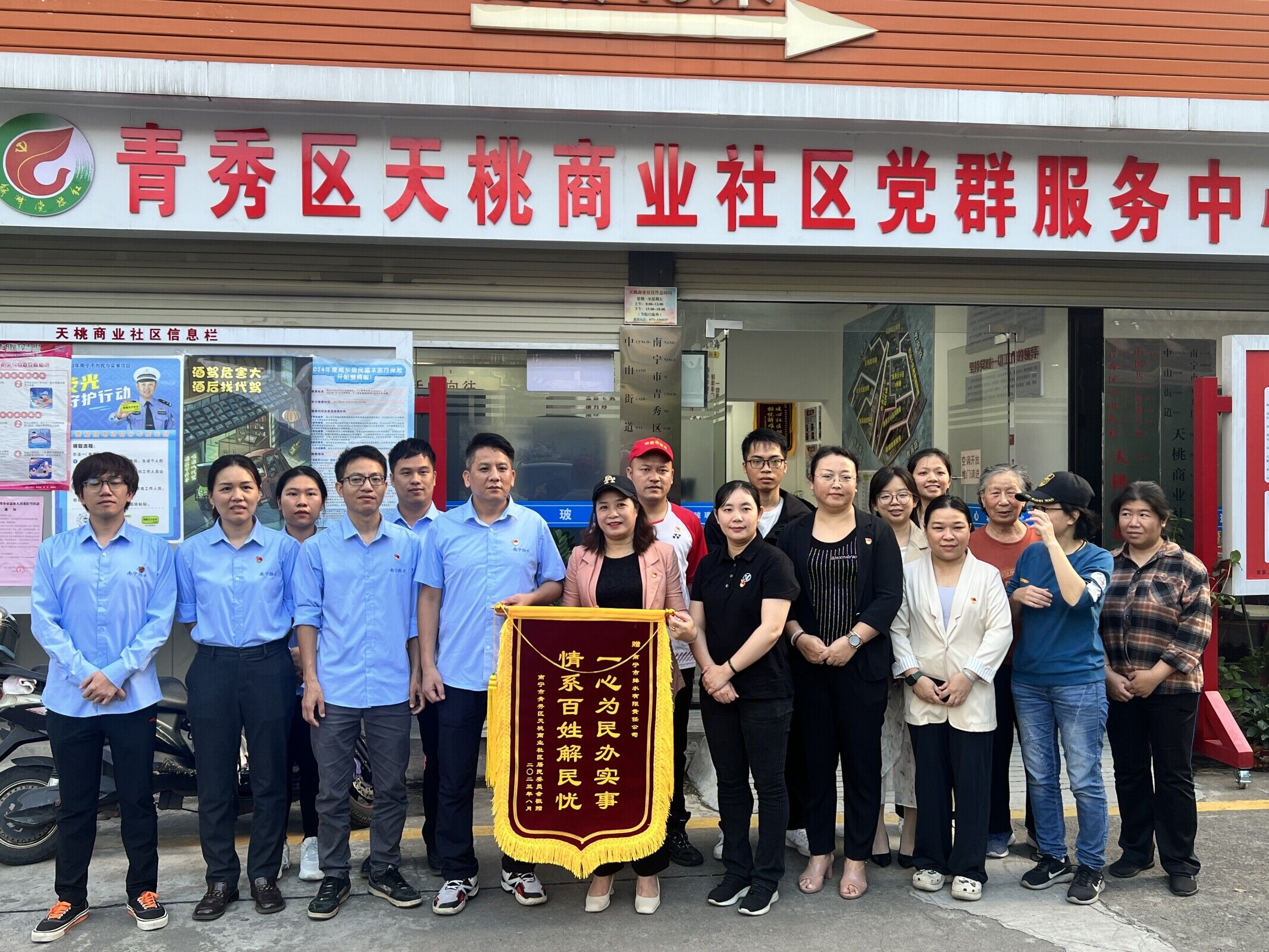 圖為天桃商業(yè)社區(qū)代表向市排水公司贈送錦旗