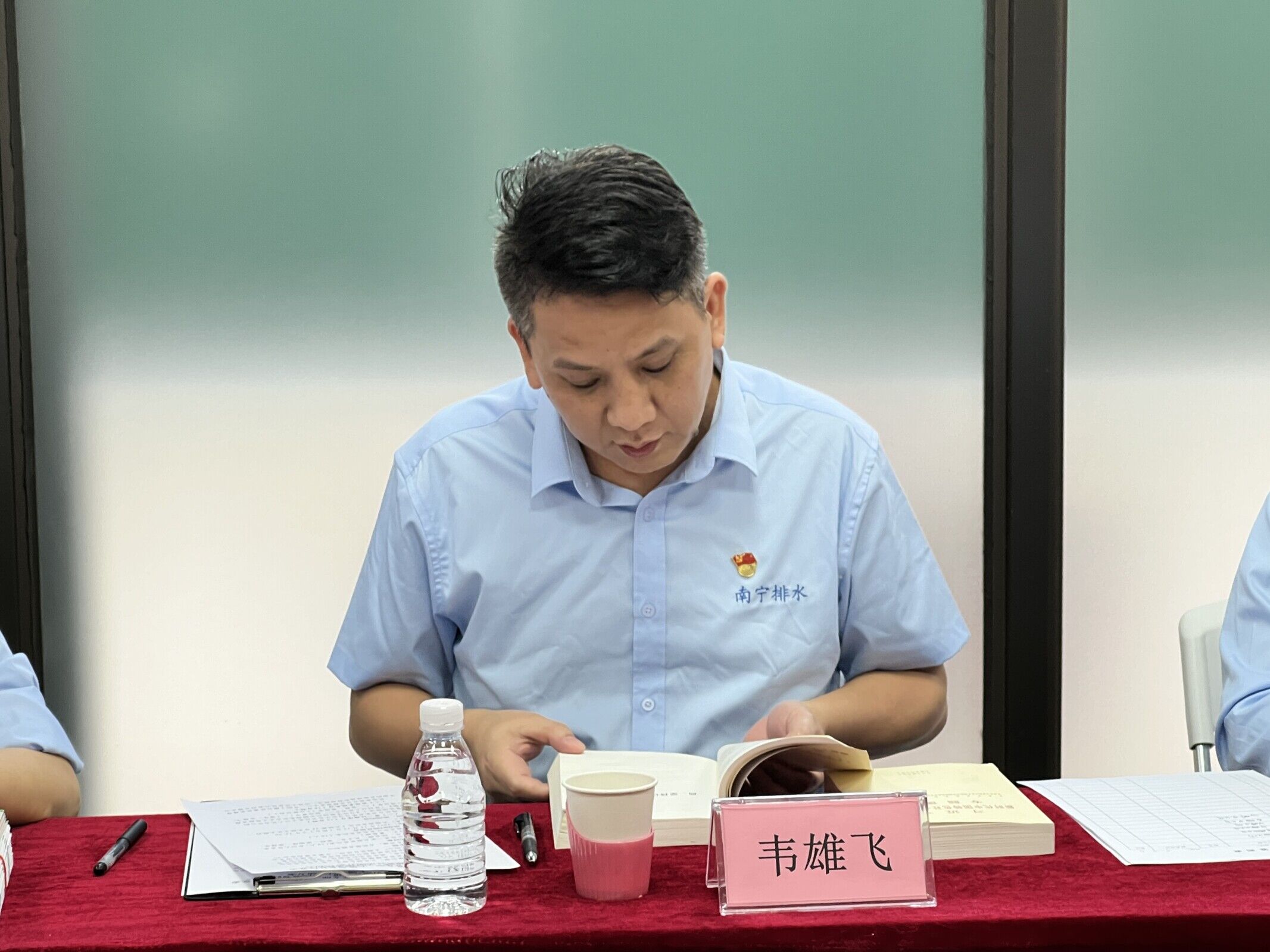 圖為市排水公司第一黨支部書記韋雄飛作黨建工作交流發(fā)言
